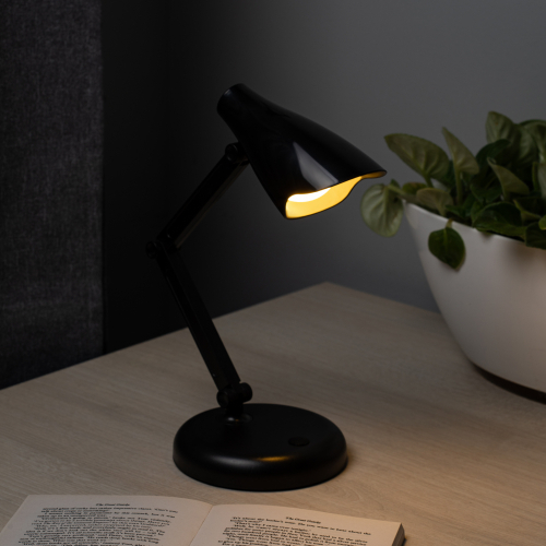Настольный светильник со светодиодами (LED) в качестве источников света. Работает от элементов 3 х АА (не входят в комплект поставки) или от USB. USB кабель в комплекте. Выключатель на основании светильника. Теплый свет, аналогичный свету лампы накаливания - цветовая температура 3000К.