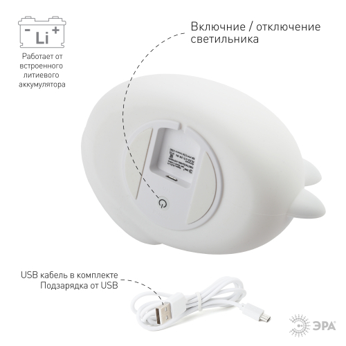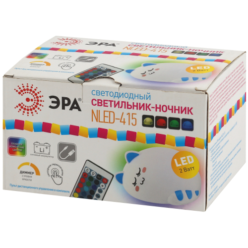 Мягкая игрушка-ночник ЭРА NLED-415-2W-BU в виде упитанного Котика, свернувшегося в комочек. Такой светодиодный светильник-ночник не только настроит ребенка на сон, но и поможет создать уют в доме. Освещение регулируется через касание или с помощью пульта, который идет в комплекте. У Котика несколько режимов: два белых с разной степенью яркости и смена RGB-цветов - эти основные режимы переключаются касанием. А с пульта дистанционного управления можно выбрать новые оттенки или скорости переключения цвета - дети обожают такую "цветомузыку"! Ребенок может аккуратно гладить силиконовый корпус для переключения основных режимов: так игрушка поможет снять стресс после изнурительного дня. Аккумуляторную лампу-ночник легко брать с собой в другие комнаты - в спальню или детскую: достаточно подзарядить его с помощью USB-шнура. Выбрав нашего Котика, Вы получите приятный подарок не только для Вашего непоседы, но и для самого себя. Найдите место для верного друга у себя дома!