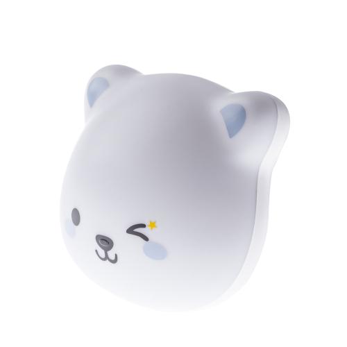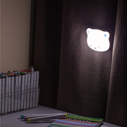 Автономный ночник, работает от встроенного литиевого аккумулятора. Подзарядка от USB, USB кабель в комплекте. Дизайн в виде мордочки медвежонка. Сенсорное переключение от прикосновения к "носику". Выбор цветовой температуры - 3 цвета: 3000К, 4500К, 6000К. Плавный диммер для регулировки яркости. Встроенное магнитное крепление для любых металлических поверхностей. Стикер с возможностью магнитного крепление к любому типу поверхностей.