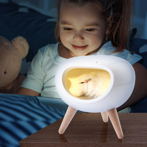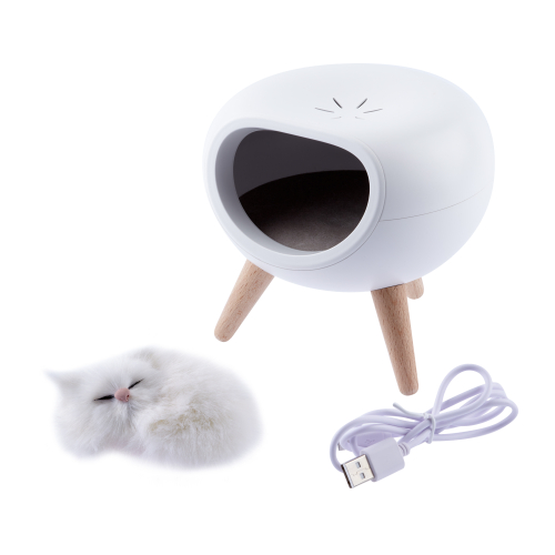 Светильник-ночник со светодиодами (LED) в качестве источников света. Дизайн в виде подсвечивающегося "домика" с пушистым котиком внутри. Котика можно вытащить! Автономный, работает от встроенного литиевого аккумулятора. Подзарядка от USB. USB кабель в комплекте. Выключатель на корпусе. Плавная регулировка яркости при помощи сенсорной кнопки.
