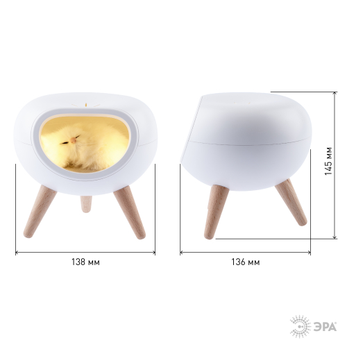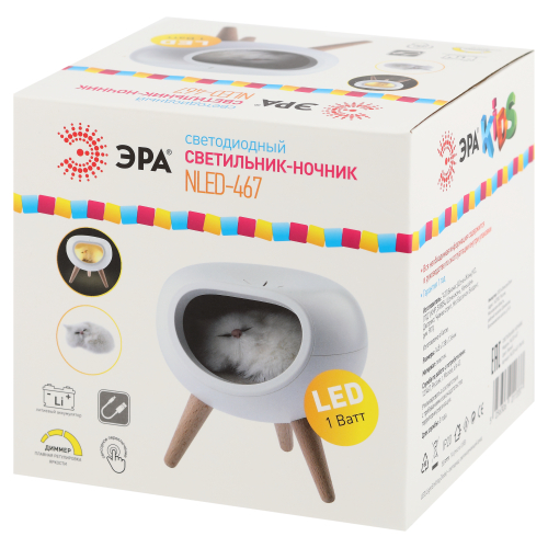 Автономный светильник-ночник ЭРА NLED-467-1W-W со светодиодами (LED). Ночник выполнен в виде стильного корпуса-домика на деревянных ножках, в котором "живет" пушистый котик. Домик светится изнутри. Пушистого котика можно вытащить! Внутри светильника котик крепится на магнит, будет держаться на любой другой металлической поверхности. Встроенный литиевый аккумулятор для автономной работы. Подзарядка от USB. USB-кабель в комплекте. Плавная регулировка яркости (прикосновением и удерживанием сенсорной кнопки на фронтальной части). Выключатель на корпусе. Светодиодный светильник-ночник ЭРА создаст для вас уютную подсветку и хорошее настроение!