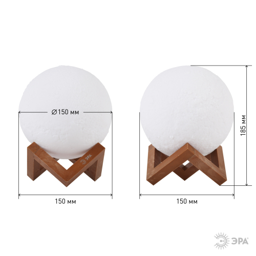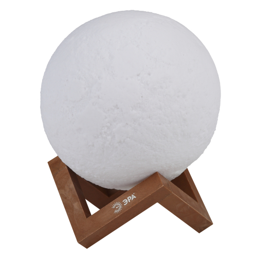 Ночник с необычным дизайном в виде реалистичной луны. Отличный подарок к любому празднику. В числе преимуществ - литиевый аккумулятор, сенсорное переключение и подзарядка от USB. "Луна" не настоящая, но очень похожа. Поверхность ночника повторяет реальный рельеф спутника Земли. Приятное свечение комфортной яркости. Есть два варианта "Луны" - поменьше и побольше: NLED-490-1W-W диаметр шара 8 см; NLED-491-1W-W диаметр шара 15 см. Модели различаются соответствующими шарику размерами сборной подставки, которая идет в комплекте. Подставка из пластика под цвет дерева. ЭРА "Луна" может светить теплым желтым или холодным белым светом переключается прикосновением. Просто возьмите ее в руки - и начнется ночная световая магия! Яркость плавно регулируется - касаемся зоны управления рядом с портом для зарядки и удерживаем, яркость изменяется. Есть возможность сделать свет очень мягким это важное преимущество, так как не все ночники можно притушить до еле видного свечения, не мешающего спать.