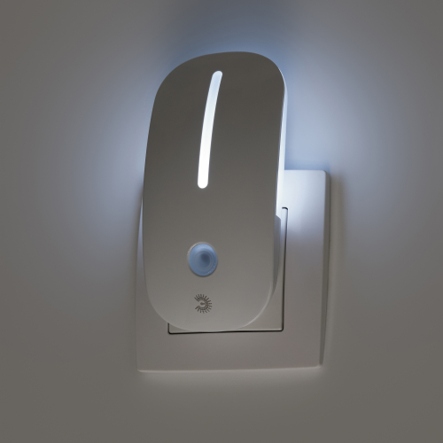 Светильник-ночник со светодиодами (LED) в качестве источников света. С сенсором света, включается автоматически, когда становится темно и так же сам гаснет с рассветом. Светодиодный ночник не мерцает, что помогает сохранить здоровье глаз. Минимальное потребление энергии позволяет использовать прибор всю ночь.