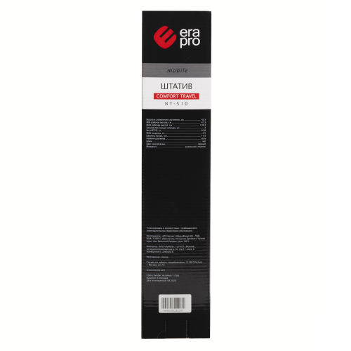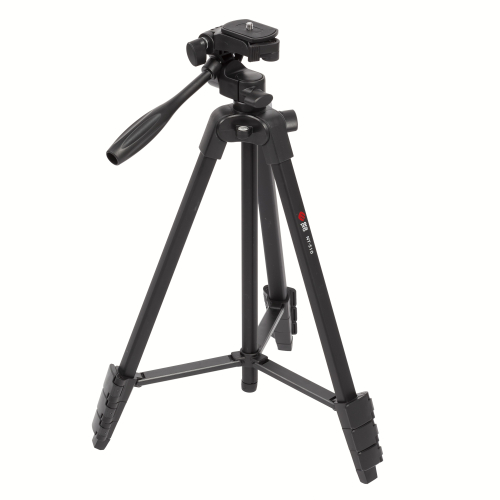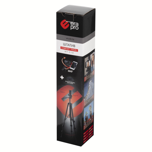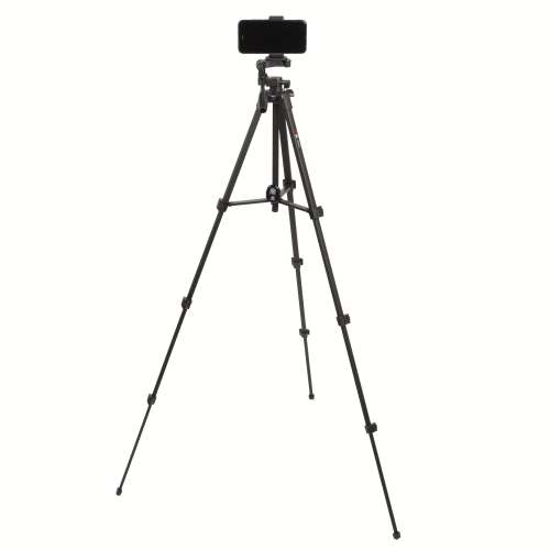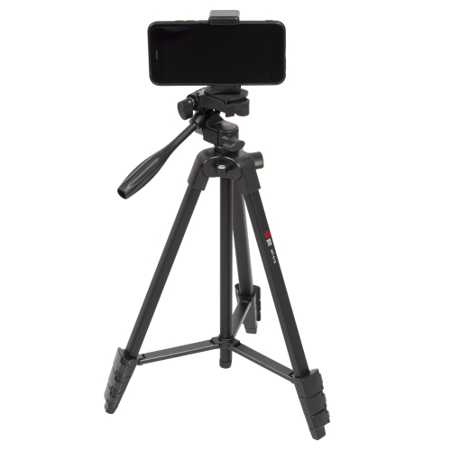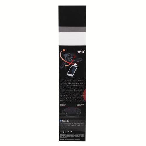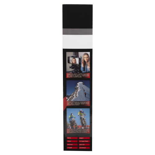 Фотоштатив для смартфонов 41,5/136,5 см, 0,58/2,5 кг. Имеет два пузырьковых уровня, изменяемую высоту, поворотную головку. Материал - алюминий, пластик. В комплекте держатель для смартфона, пульт управления смартфоном, крепится в специальное крепление на ножке штатива.