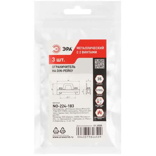 Ограничитель на DIN-рейку металлический с 2 винтами ЭРА применяется для фиксации модульной аппаратуры, автоматических выключателей, автоматических выключателей в литом корпусе и других изделий на DIN-рейке 35 мм в случаях, когда требуется более надежное закрепление установленного оборудования. Ограничитель особенно удобен, если на рейке только несколько изделий, и не все они компактно установлены в одном месте, а размещены на рейке в разных местах. Тогда фиксатор установит их и не даёт смещаться под воздействием механического воздействия или вибрации, а электрические соединения аппаратов с проводниками будут расположены аккуратно, без провисаний или лишнего натяжения.
