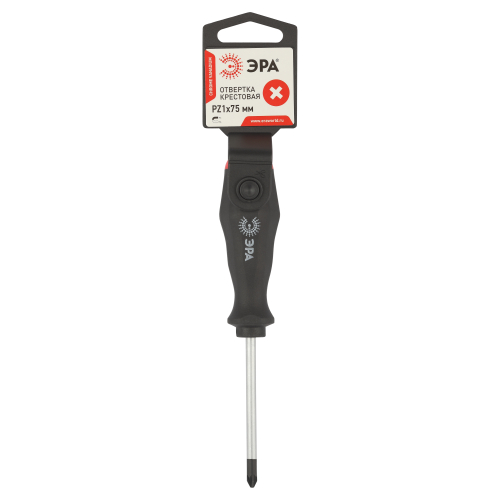 Крестовая отвертка ЭРА 1х75 мм со стержнем из хром-ванадиевой стали, эргономичной двухкомпонентной рукояткой и магнитным наконечником. Тип данной крестовой отвертки - PZ. Длина стержня отвертки - 75 мм.
