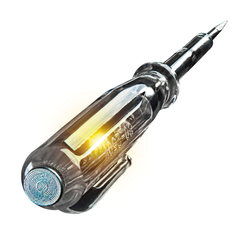Стержень из кованой углеродистой стали SAE 1045. Никелированная отделка. Инжекторная рукоятка. Электрическая цепь активируется кнопкой на краю рукоятки. Неоновая подсветка. Подходит для 80 - 250V. Стержни отверток тестируются на специальном испытательном стенде, чтобы обеспечить идеальный баланс между механической прочностью и твердостью. Рукоятки изготовлены из высокопрочных материалов.
