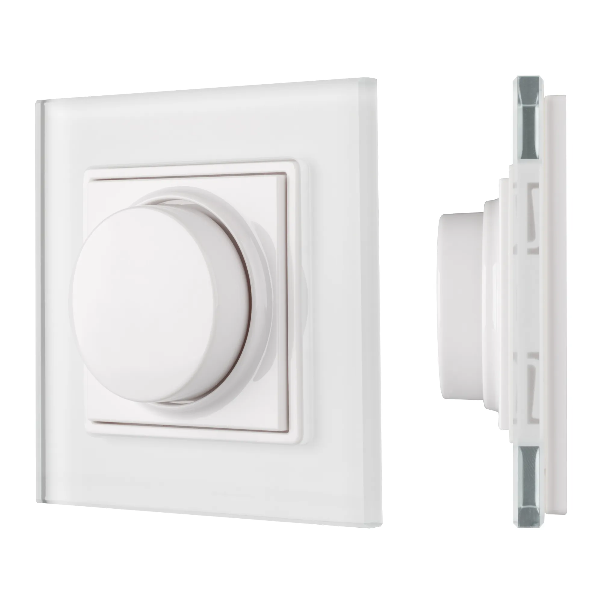 Накладная роторная панель белого цвета для управления MIX-контроллерами серий SR, Excellent. Позволяет осуществлять включение/выключение источников света, реуглировку их яркости, управление цветовой температурой. Питание панели осуществляется от 3В батарейки CR2430. Габариты составляют 86x86x27 мм, корпус белого цвета, лицевая часть рамки панели - стекло. Изделие совместимо с рамками мировых производителей, в том числе, GIRA S-55, E2, Event, Esprit.