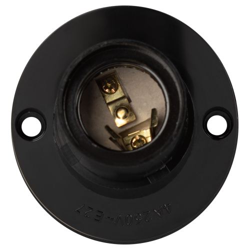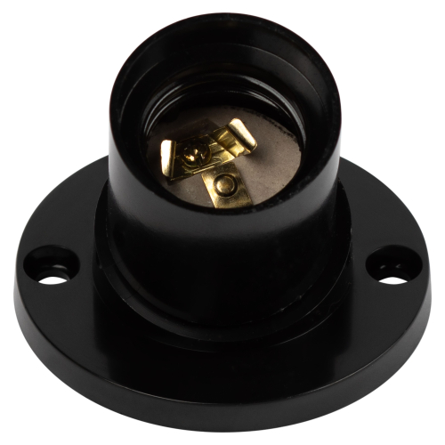 бакелитовый патрон настенный; способен выдерживать высокие температуры (до 300 градусов), обладает высокими электроизоляционными и антикоррозийными свойствами, не подвержен воздействию агрессивных сред; удобное подключение провода к контактной группе с помощью зажимных винтов