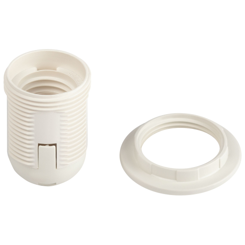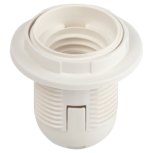 патрон с кольцом изготавливается из термостойкого пластика, материал химически устойчивый к агрессивным средам, обладает высокой прочностью и теплостойкостью; не обладает способностью выдерживать высокие температуры нагрева, поэтому его чаще всего используют для ламп накаливания мощностью не более 60 Вт