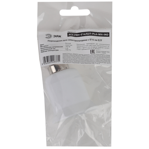 переходник E14-E27 изготавливается из термостойкого пластика, материал химически устойчивый к агрессивным средам, обладает высокой прочностью и теплостойкостью.