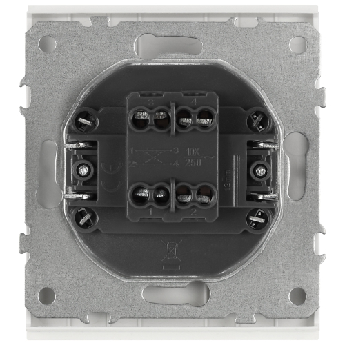 Выключатель одноклавишный промежуточный / перекрёстный серии ЭРА Arktik скрытой установки механизм цвет белый 16-1108-01. Номинальные характеристики 10А 250В IP20. Сделан из поликарбоната, оснащён винтовыми клеммами. Парные клеммы обеспечивают соединение шлейфом. Монтаж в подрозетник производится и на лапки, и на винты. Рамки приобретаются отдельно.