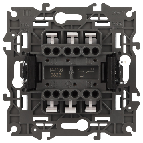 Выключатель 2-клавишный проходной Эра Elegance алюминий 14-1106-03. Оснащён автоматическими клеммами для надёжной фиксации жил кабеля в механизме. Рамки приобретаются отдельно.