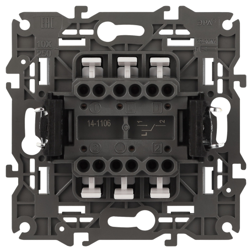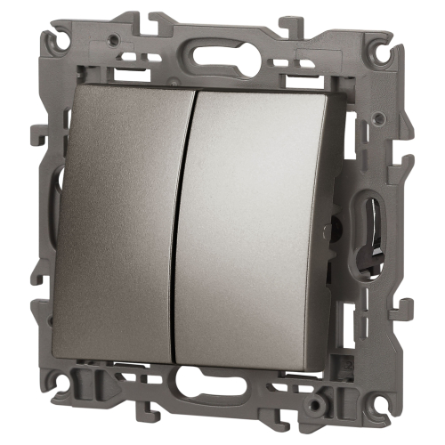 Переключатель 2-клавишный проходной серии Эра Elegance цвет титан 14-1106-16. Характеристики 10А 250В. Оснащён автоматическими клеммами для надёжной фиксации жил кабеля в механизме. Рамки приобретаются отдельно.