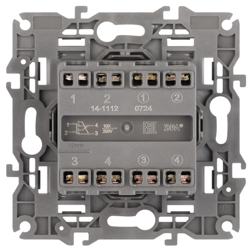 Переключатель перекрёстный/промежуточный двойной серии Эра Elegance скрытой установки цвет белый матовый 14-1112-01М. Характеристики 10А 250В. Винтовой зажим. Рамки приобретаются отдельно.