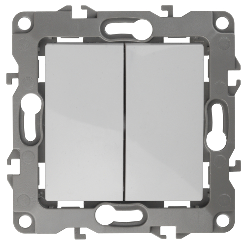 Выключатель перекрёстный/промежуточный, двойной серии Эра 12 скрытой установки механизм, цвет белый 12-1112-01. Номинальные хар-ки 10А 250В. Сделан из поликарбоната, оснащено автоматическими клеммами для быстрой и надёжной фиксации жил кабеля в механизме. Парные клеммы обеспечивают соединение шлейфом. Монтаж в подрозетник производится на винты. Рамки приобретаются отдельно. Рамки Эра 12: 1 пост 12-5001-хх, 2 поста 12-5002-хх, 3 поста 12-5003-хх, 4 поста 12-5004-хх, 5 постов 12-5005-хх. Рамки Эра 12 Сатин: 1 пост 12-5101-хх, 2 поста 12-5102-хх, 3 поста 12-5103-хх, 4 поста 12-5104-хх, 5 постов - 12-5105-хх (хх - код цвета: 01-белый, 02-слоновая кость, 03-алюминий, 04-шампань, 05-антрацит, 06-чёрный, 07-ольха(белёный дуб-сатин), 08-вишня, 09-дуб, 10-венге, 11-сосна, 21-жёлтый, 22-оранжевый, 23-красный, 24-охра, 25-бордо, 26-лайм, 27-зелёный, 28-голубой, 29-синий).