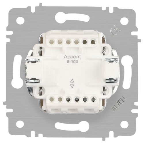 Переключатель 1-клавишный серии Intro Accent скрытой установки механизм цвет графит 6-103-07. Номинальные характеристики 10А 250В. Выполнен из негорючего термопласта, оснащён винтовыми клеммами. Парные клеммы обеспечивают соединение шлейфом. Монтаж в подрозетник производится и на лапки, и на винты. Рамка приобретается отдельно. В серии представлены рамки до 5 постов: на 1 пост - 6-501-хх, на 2 поста - 6-502-хх, на 3 поста - 6-503-хх, на 6 поста - 4-504-хх, на 5 постов - 6-505-хх (где хх - цветовой код: 01 - белый, 01М - матовый белый, 02 - слоновая кость, 03 - алюминий, 04 - шампань, 05 - антрацит, 06 - перламутр, 07 - графит, 08 - бронза, 09 - титан, 10 - венге, 11 - сосна)