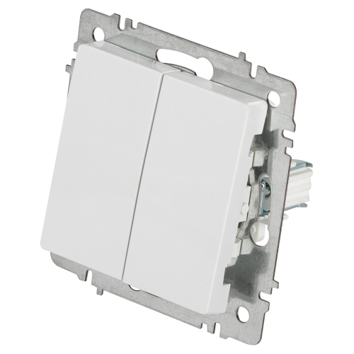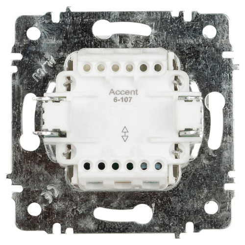 Переключатель 2-клавишный серии Intro Accent скрытой установки механизм цвет белый 6-107-01. Номинальные характеристики 10А 250В. Выполнен из негорючего термопласта, оснащён винтовыми клеммами. Парные клеммы обеспечивают соединение шлейфом. Монтаж в подрозетник производится и на лапки, и на винты. Рамка приобретается отдельно. В серии представлены рамки до 5 постов: на 1 пост - 6-501-хх, на 2 поста - 6-502-хх, на 3 поста - 6-503-хх, на 6 поста - 4-504-хх, на 5 постов - 6-505-хх (где хх - цветовой код: 01 - белый, 01М - матовый белый, 02 - слоновая кость, 03 - алюминий, 04 - шампань, 05 - антрацит, 06 - перламутр, 07 - графит, 08 - бронза, 09 - титан, 10 - венге, 11 - сосна)