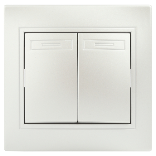 Проходной выключатель (переключатель) двухклавишный серии Intro Plano скрытой установки цвет перламутр 1-107-06. Номинальные характеристики 10А 250В. Выключатель выполнен из качественного негорючего термопласта, укомплектован одноместной рамкой, оснащён винтовыми клеммами. Вертикальное расположение клемм обеспечивает удобный и надёжный монтаж. Клеммы с двумя отверстиями позволяют соединять соседние выключатели шлейфом. Установка в подрозетник производится как на монтажные лапки, так и на винты. Для установки 2-х и более выключателей в несколько подрозетников в ряд дополнительно используются многоместные рамки: 2-х постовая - 1-502-хх, 3-х постовая 1-503-хх, 4-х постовая - 1-504-хх (где хх - цветовой код: 01 - белый, 02 - слоновая кость, 03 - алюминий, 04 - шампань, 05 - антрацит, 10 - венге, 11 - сосна).