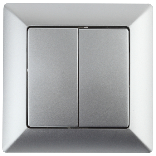 Двухклавишный проходной переключатель серии Intro Solo 4-107-03 цвет алюминий, скрытой установки. Номинальные характеристики: 10А-250В. Выполнен из термопласта, укомплектован одноместной рамкой.