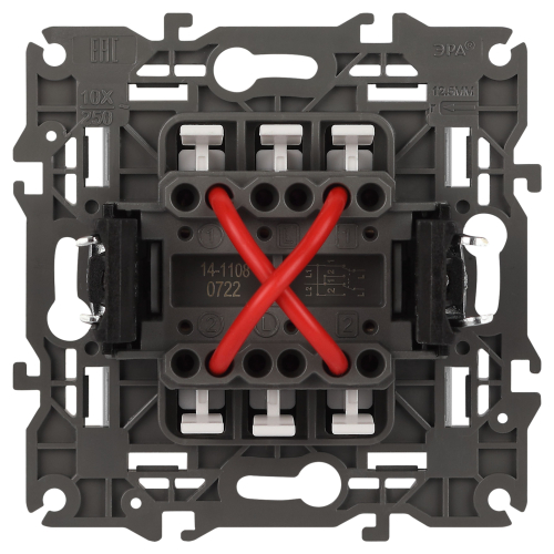 Выключатель 1-клавишный перекрёстный Эра Elegance алюминий 14-1108-03. Оснащён автоматическими клеммами для надёжной фиксации жил кабеля в механизме. Рамки приобретаются отдельно. Рамки Эра Elegance ПЛАСТИК: 1 пост 14-5001-хх, 2 поста 14-5002-хх, 3 поста 14-5003-хх, 4 поста 14-5004-хх, 5 постов 14-5005-хх; СТЕКЛО: 1 пост 14-5101-хх, 2 поста 14-5102-хх, 3 поста 14-5103-хх, 4 поста 14-5104-хх; МЕТАЛЛ: 1 пост 14-5201-хх, 2 поста 14-5202-хх, 3 поста 14-5203-хх, 4 поста 14-5204-хх; ДЕРЕВО: 1 пост 14-5301-хх, 2 поста 14-5302-хх, 3 поста 14-5303-хх, 4 поста 14-5304-хх (хх - код цвета: 00-прозрачный, 01-белый, белёный дуб, 02-слоновая кость, 03-алюминий, 04-шампань, 05-чёрный, чёрное дерево, 07-ясень, 09-дуб, 10-венге, 11-клён, 14-медь, 21-жёлтый, 22-оранжевый, 23-красный, 25-бордо, 26-лайм, 27-зелёный, 28-голубой, 29-синий, 30-розовый, 31-мокко, 32-серый, 41-сталь, 42-титан).