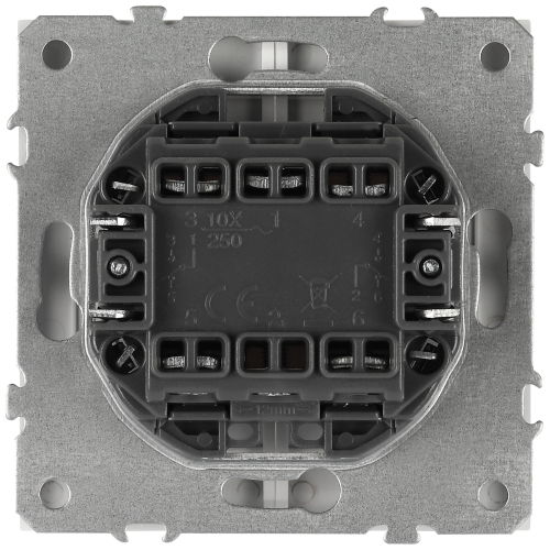 Выключатель перекрёстный/промежуточный двойной серии ЭРА Galaxy скрытой установки механизм цвет белый 15-1110-01. Номинальные хар-ки 10А 250В IP20. Сделан из поликарбоната, оснащён винтовыми клеммами. Парные клеммы обеспечивают соединение шлейфом. Монтаж в подрозетник производится и на лапки, и на винты. Рамки приобретаются отдельно.