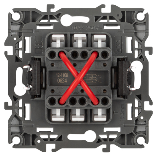 Выключатель одноклавишный промежуточный / перекрёстный серии Эра 12 скрытой установки механизм цвет белый матовый 12-1108-01М. Номинальные хар-ки 10А 250В. Сделан из поликарбоната, оснащён автоматическими клеммами для быстрой и надёжной фиксации жил кабеля в механизме. Парные клеммы обеспечивают соединение шлейфом. Монтаж в подрозетник производится и на лапки, и на винты. Рамки приобретаются отдельно.