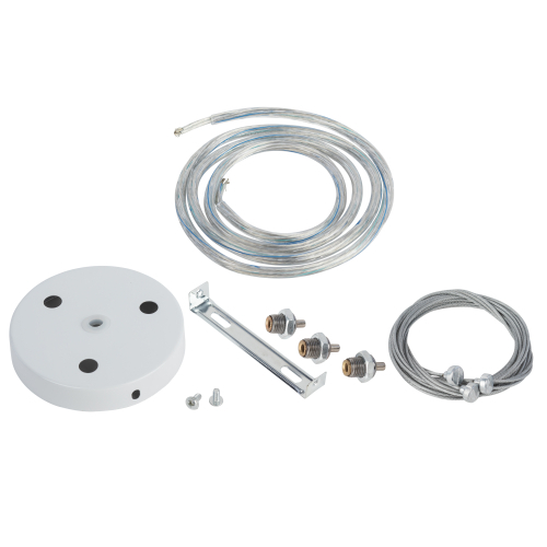 Понравившийся накладной светильник займет достойное место в комнате, если его закрепить тросовым подвесом SPB 6 компании ЭРА. Подвес позволяет произвести монтаж различных моделей настенно-потолочных светильников, стать дизайнером светового освещения своей квартиры или других помещений. В комплект входит основание с тремя цангами, 3 троса с карабинами для фиксации светильника и провод для подключения питания длиной 1,2 метра.
