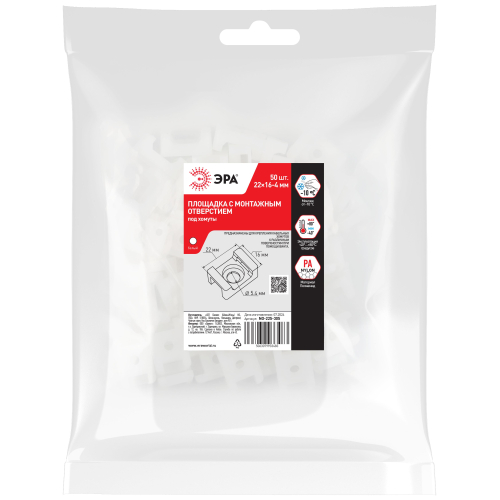 Площадки под хомуты ЭРА с монтажным отверстием предназначены для монтажа кабельных стяжек к различным поверхностям при помощи винта или самореза.