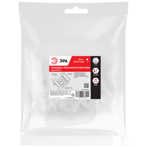 Площадки под хомуты ЭРА с монтажным отверстием предназначены для монтажа кабельных стяжек к различным поверхностям при помощи винта или самореза.