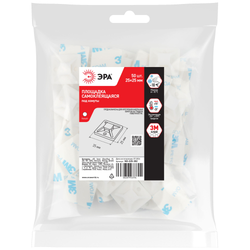 Площадки под хомуты ЭРА с самоклеящимся слоем предназначена для крепления кабельных стяжек на гладких поверхностях.