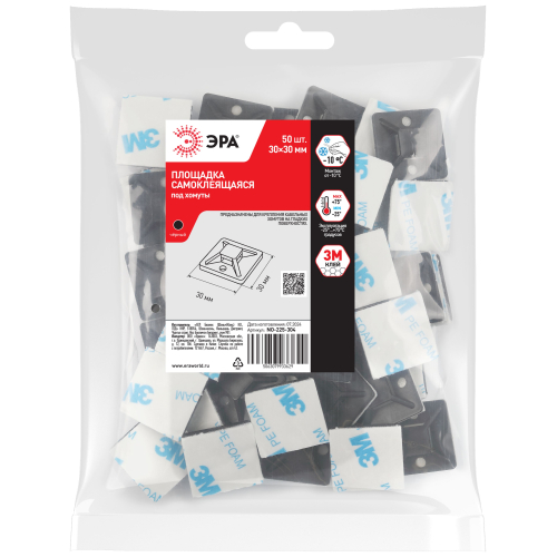 Площадки под хомуты ЭРА с самоклеящимся слоем предназначена для крепления кабельных стяжекв на гладких поверхностях.
