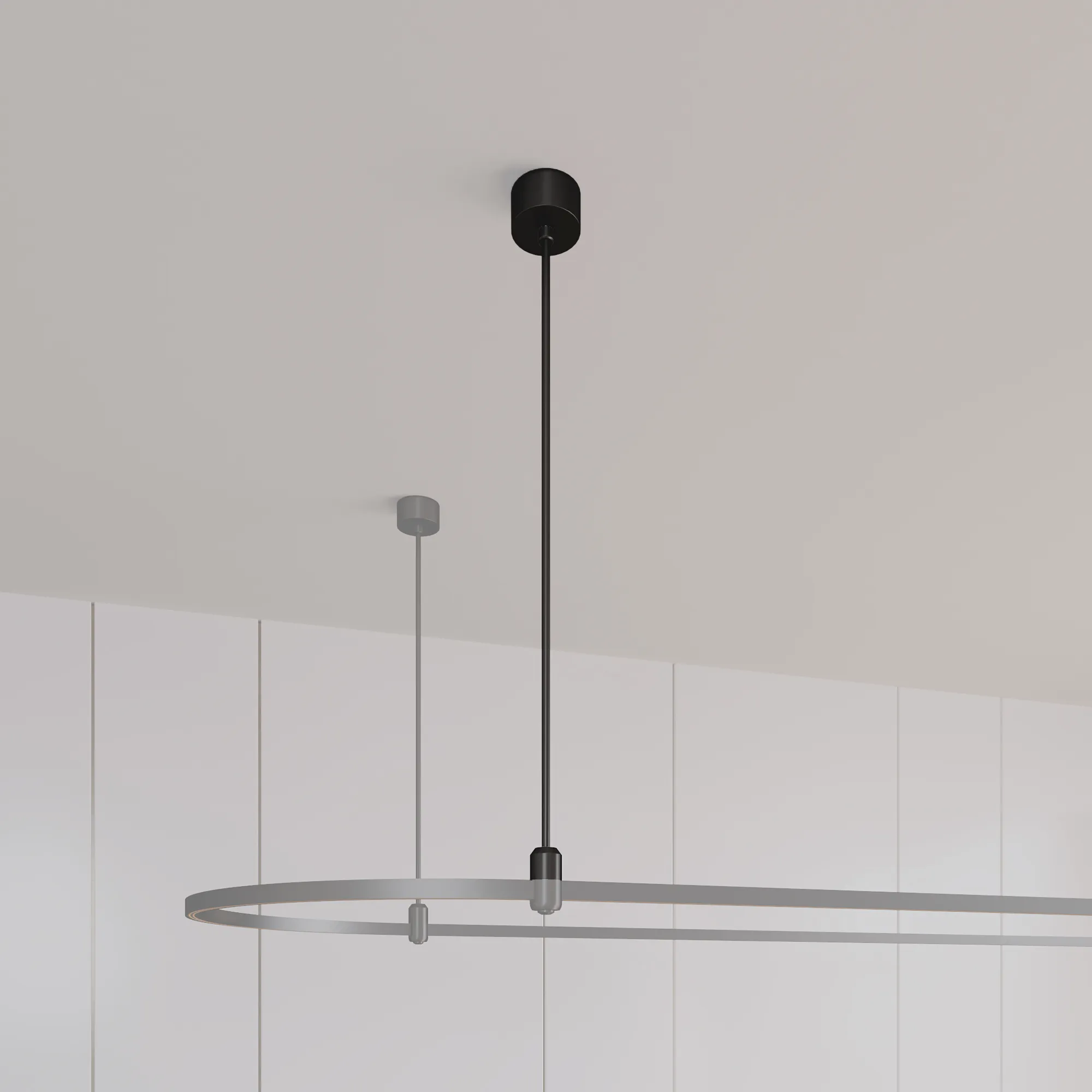 Подвес жесткий используется для крепления треков системы APRIORI к потолку или другой поверхности и подвода питания DC48V к системе. Подвес имеет тип крепления A. Изготавливается из алюминия, окрашенного в черный цвет. Диаметр чаши 80 мм, внутренний диаметр чаши 74мм, внешняя высота чаши 38 мм, глубина чаши до монтажного отверстия 25 мм, общая высота подвеса 365 мм.