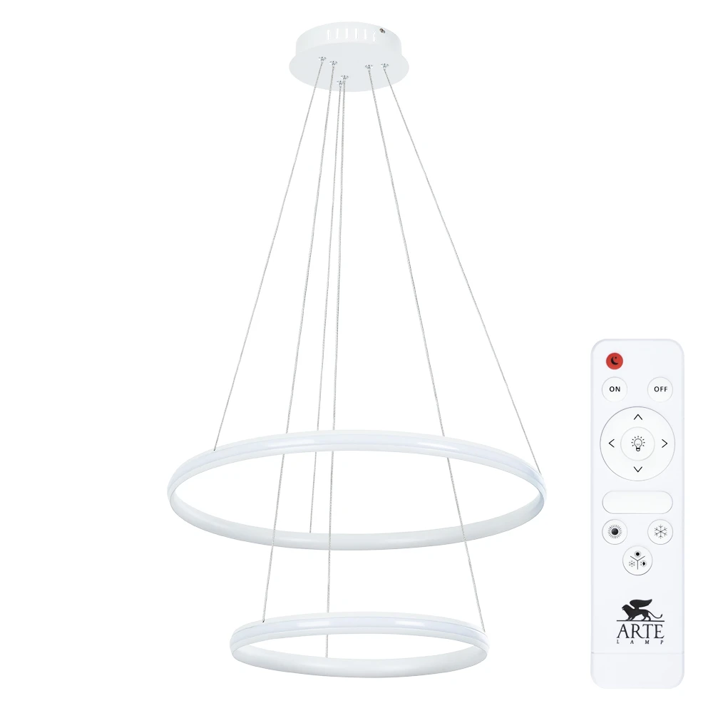 Подвесная люстра Arte Lamp MERIDIANA с дистанционным управлением. Современный дизайн в белом цвете создает строгий и элегантный образ. Металлическая конструкция с направленными в стороны световыми элементами обеспечивает равномерное освещение пространства. Модель использует светодиодные лампы и монтируется на потолок с помощью планки. Итальянский бренд гарантирует качество и долговечность эксплуатации.
