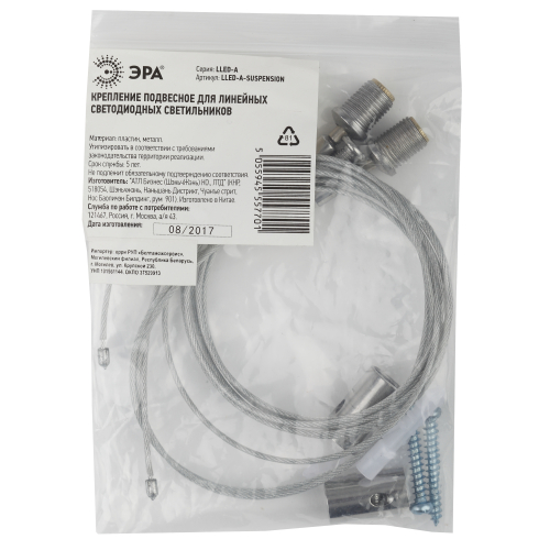 Система подвеса LLED-А-SUSPENSION для линейных светильников всех типов (SPO, LLED, SPP). В комплекте: два металлических троса длиной 1м, крепежные элементы. Крепление выдерживает вес до 24кг