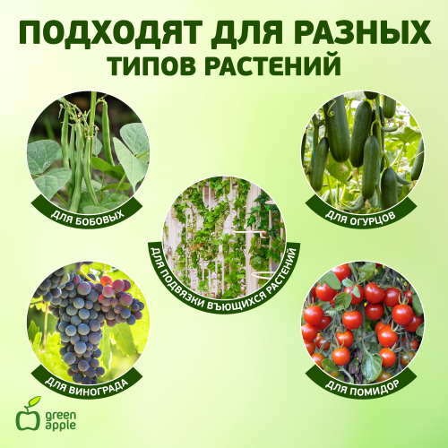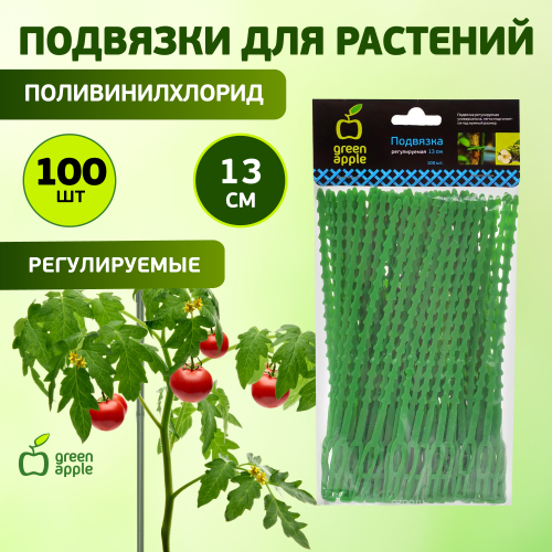 Садовая подвязка для растений Green Apple регулируемая GTT-26 - пластиковое приспособление для фиксации стеблей возле опоры, которая способствует правильному развитию растения и направлению роста побега. Преимущества: пластиковая подвязка не травмирует руки и не повреждает перчатки; зубчатый механизм позволяет регулировать подвязку под любой размер; натуральный цвет сливается с зеленью растений и не нарушает гармонию садовых композиций. Надежно держится и не раскрепляется. Длина 13 см, в комплекте 100 штук. Цвет: зеленый.
