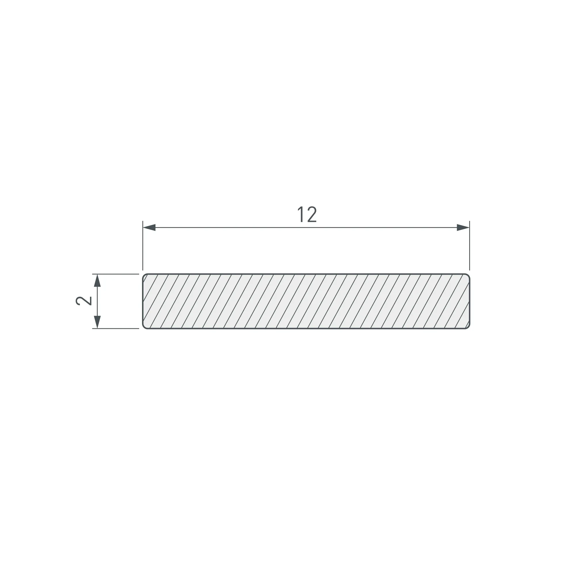 Габаритные размеры полосы составляют 2000 мм в длину, 12 мм в ширину и 2 мм в высоту. Полоса позволяет использовать светодиодную ленту шириной до 12 мм и мощностью до 9,6 Вт/м.
