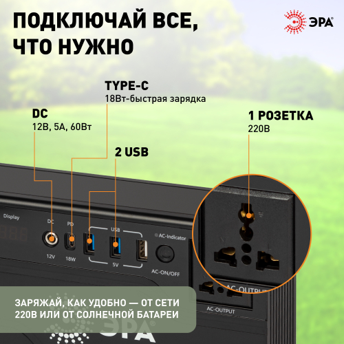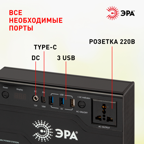 Портативная солнечная электростанция ЭРА ERAZS-01 (комплект), 200 Вт, 32400 мАч, Li-ion. Солнечная панель 50 Вт
