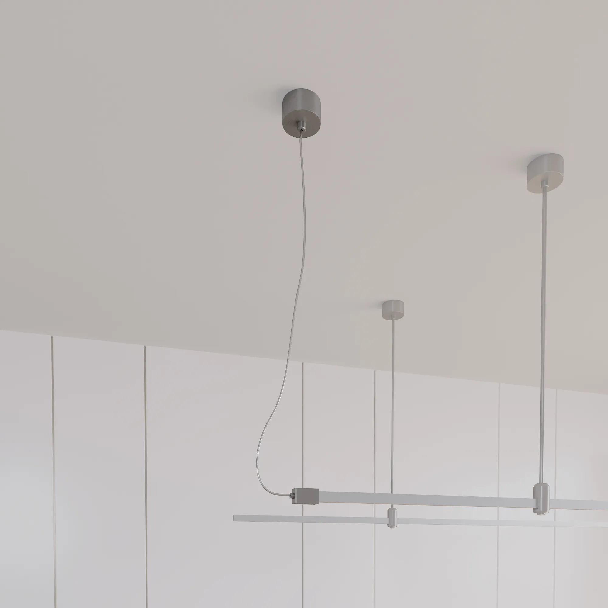 Потолочная чаша используется для бокового подвода питания DC48V к треку системы APRIORI. Не несет весовую нагрузку. Изготавливается из алюминия, гальванизированного в цвет титан. Диаметр чаши 80 мм, внутренний диаметр чаши 74 мм, внешняя высота чаши 38 мм, глубина чаши до монтажного отверстия 25 мм, общая высота подвеса 1500 мм.