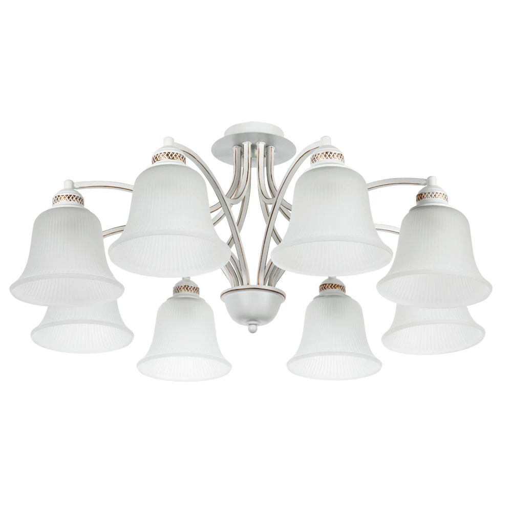 Светильник ARTE LAMP A2713PL-8WG серии EMMA. Подчеркнет стиль помещения. Высота 33 cm. Диаметр 80 cm Параметры пылевлагозащиты IP — 20. Плафон стеклянный белого цвета, а материал/цвет арматуры металл/золотистый. Использует лампу с цоколем E27. Площадь освещения охватывает 18 m2. Идеально подходит для гостиной. Страна происхождения бренда — ИТАЛИЯ. Вес с упаковкой 7.1 kg