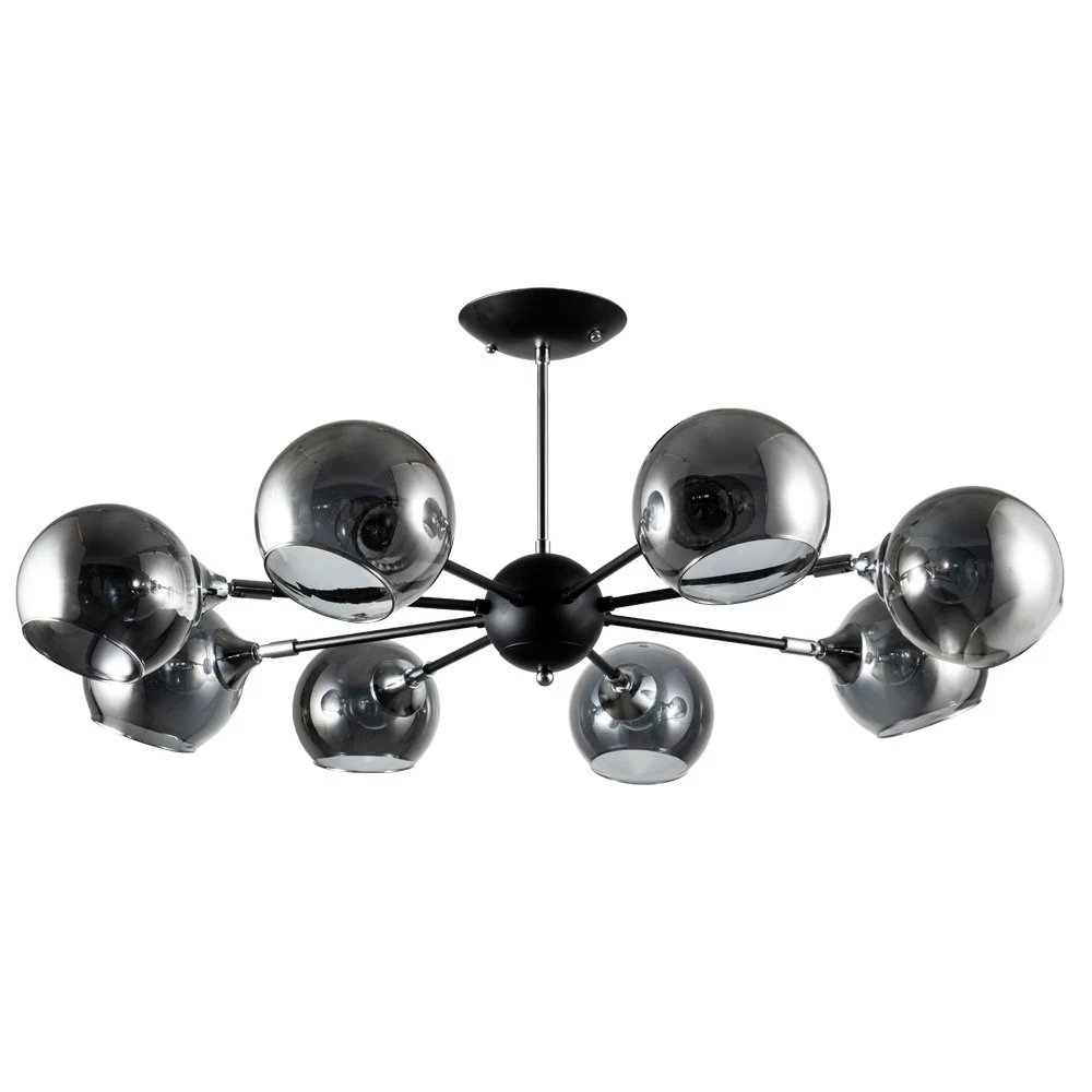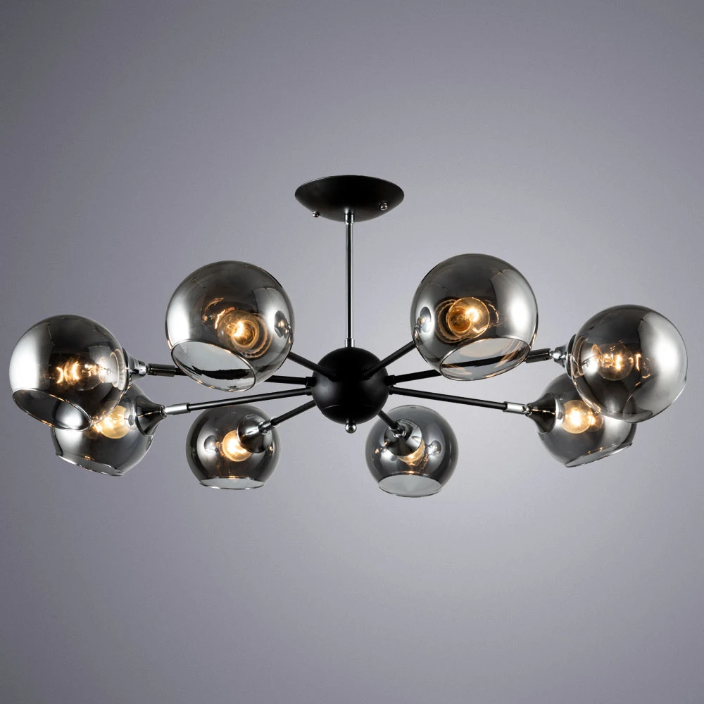 Светильник ARTE LAMP A2708PL-8BK серии LAGOS. Подчеркнет стиль помещения. Высота 33 cm. Диаметр 86 cm Параметры пылевлагозащиты IP — 20. Плафон стеклянный серого цвета, а материал/цвет арматуры металл/чёрный. Использует лампу с цоколем E27. Площадь освещения охватывает 18 m2. Идеально подходит для гостиной. Страна происхождения бренда — ИТАЛИЯ. Вес с упаковкой 3.2 kg