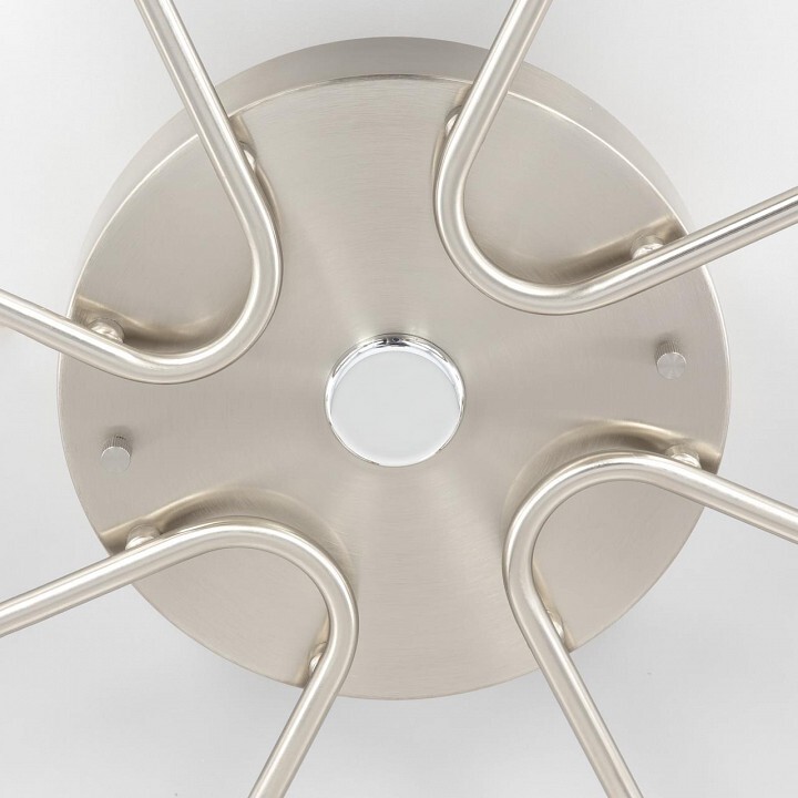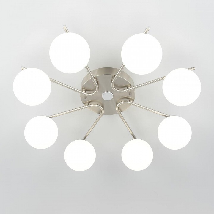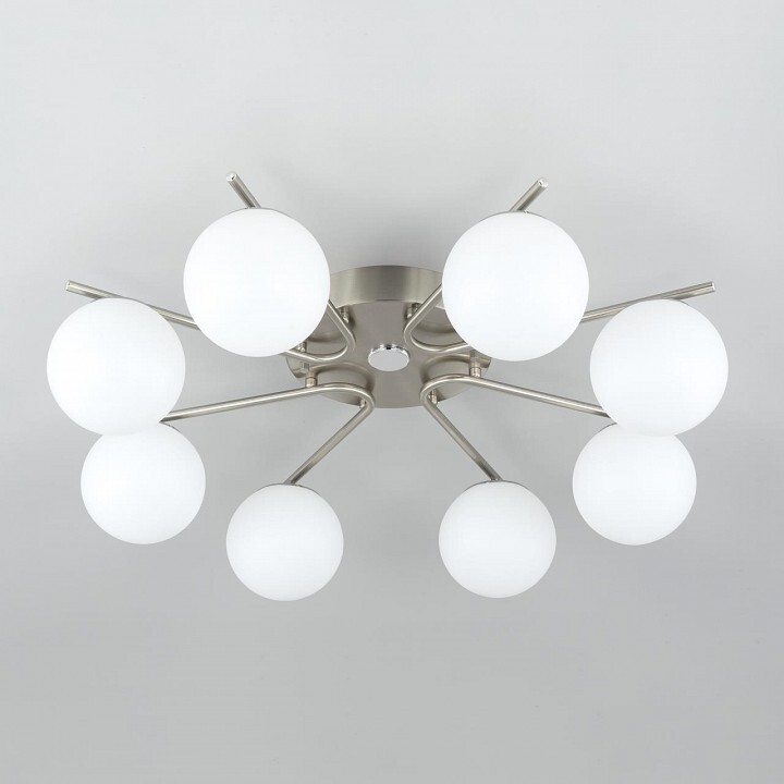 Люстрой можно управлять: из приложения на смартфоне по Wi-Fi при наличии интернета, с помощью голосовых помощников Алиса и Маруся, а также пультом дистанционного управления и настенным выключателем. Можно легко настроить работу по сценариям и расписанию. Люстра восьмирожковая с круглым основанием, корпус металлический, цвет матовый хром. Плафоны в форме шара, изготовлены из оптического полимера, цвет белый матовый. В основании каждого плафона расположен уникальный светодиодный модуль, обеспечивающий яркое основное освещение или красочную RGB подсветку, с плавной регулировкой яркости во всех режимах света.