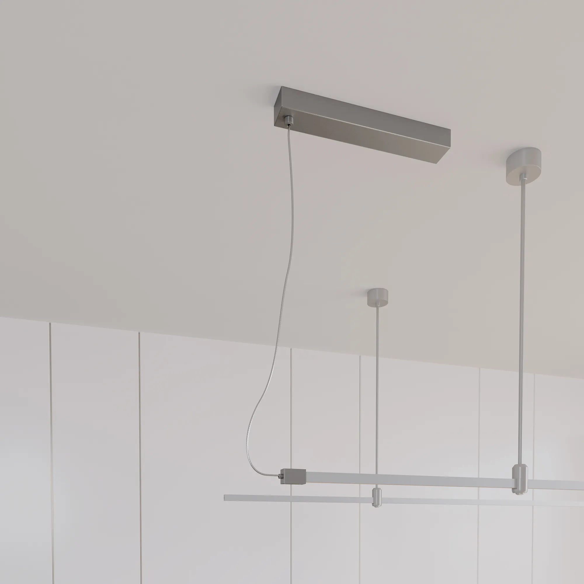Потолочный короб позволяет спрятать источник питания DC48В, который используется для питания системы APRIORI. Короб имеет боковой подвод питания к треку. Не несет весовую нагрузку. Изготавливается из алюминия, гальванизированного в цвет титан. Размер ДxШxВ: 400x60x40мм. Внутренний размер под БП ДxШxВ: 350*50*30 мм. Длина кабеля 5000 мм.