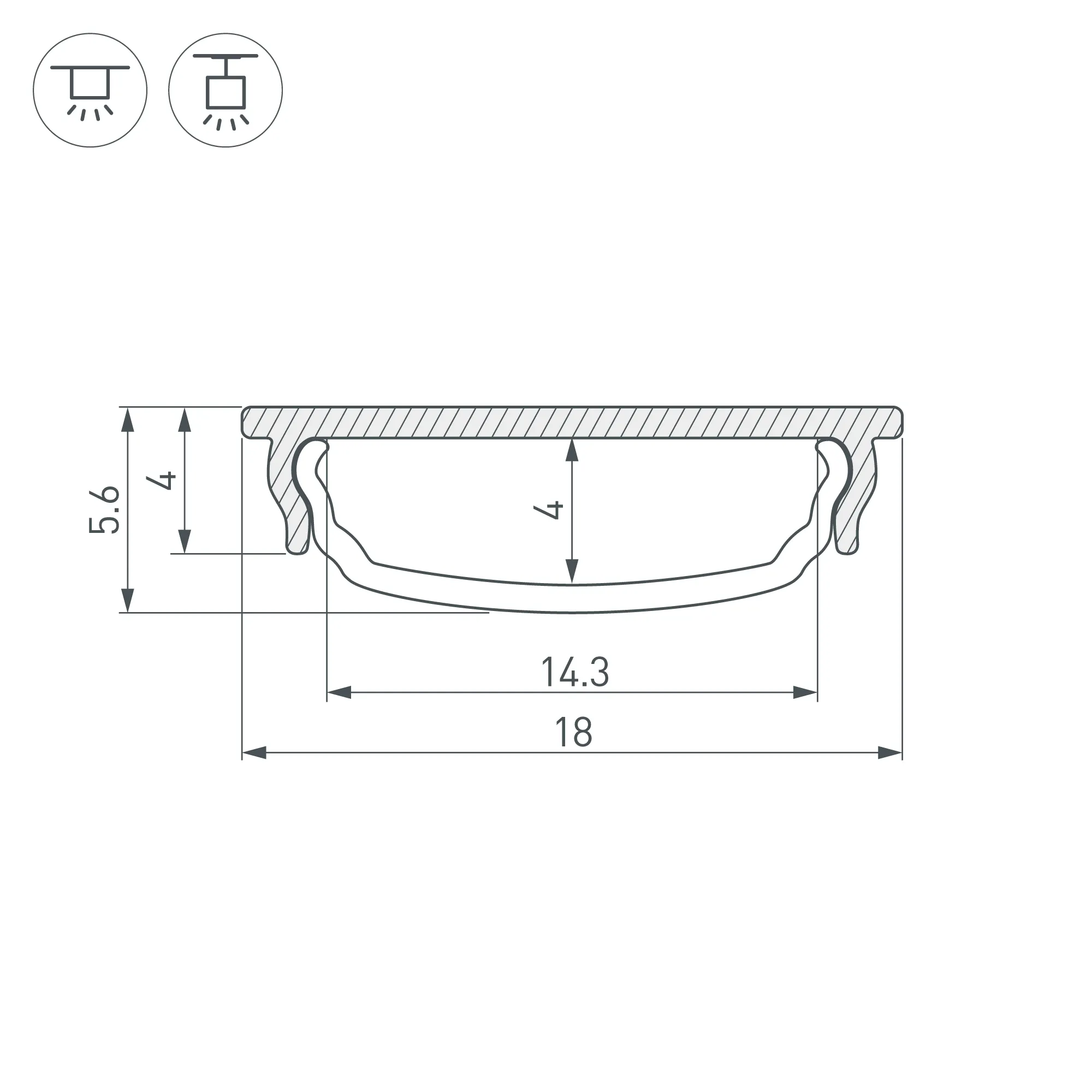 Габаритные размеры профиля составляют 2000 мм в длину, 18 мм в ширину и 4 мм в высоту. Площадка для установки светодиодных лент позволяет использовать ленту шириной до 14,3 мм и мощностью до 12 Вт/м. Это обеспечивает гибкость в выборе светодиодных лент и создает потрясающие световые решения.