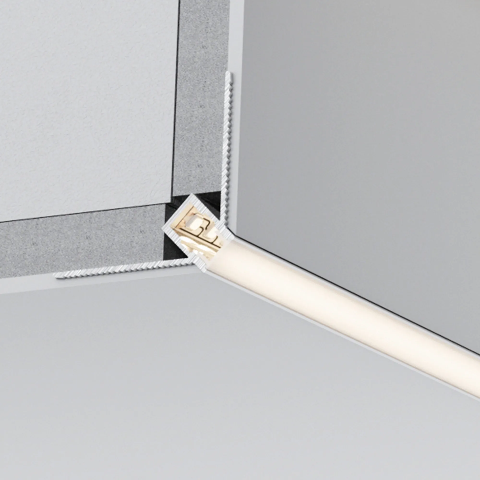 Встраиваемый угловой алюминиевый анодированный профиль для светодиодных лент и линеек под строительную отделку для контурной подсветки внешних углов.