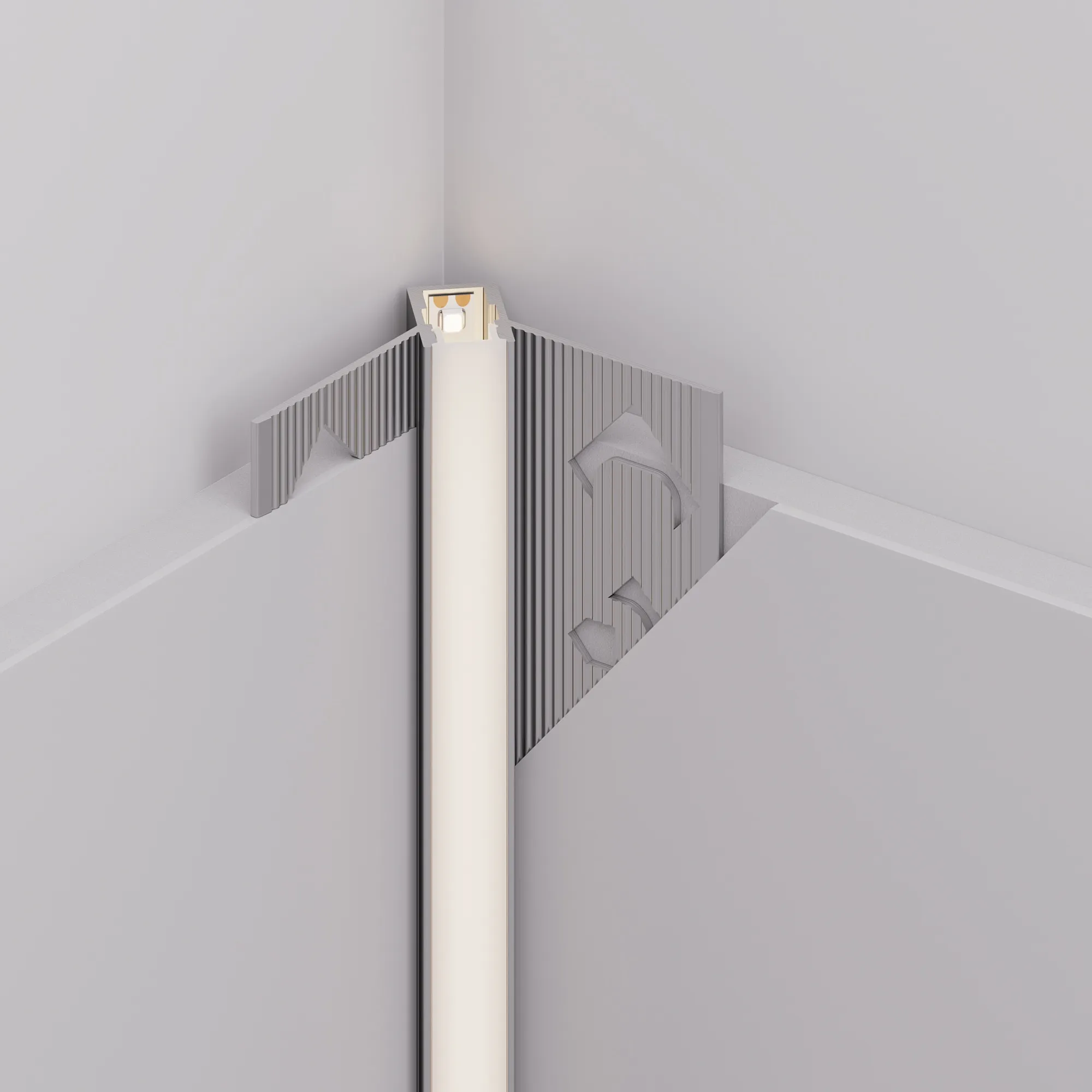 Под заказ от 1600 м. Встраиваемый угловой алюминиевый анодированный профиль для светодиодных лент и линеек под строительную отделку или плитку для контурной подсветки внутренних углов.