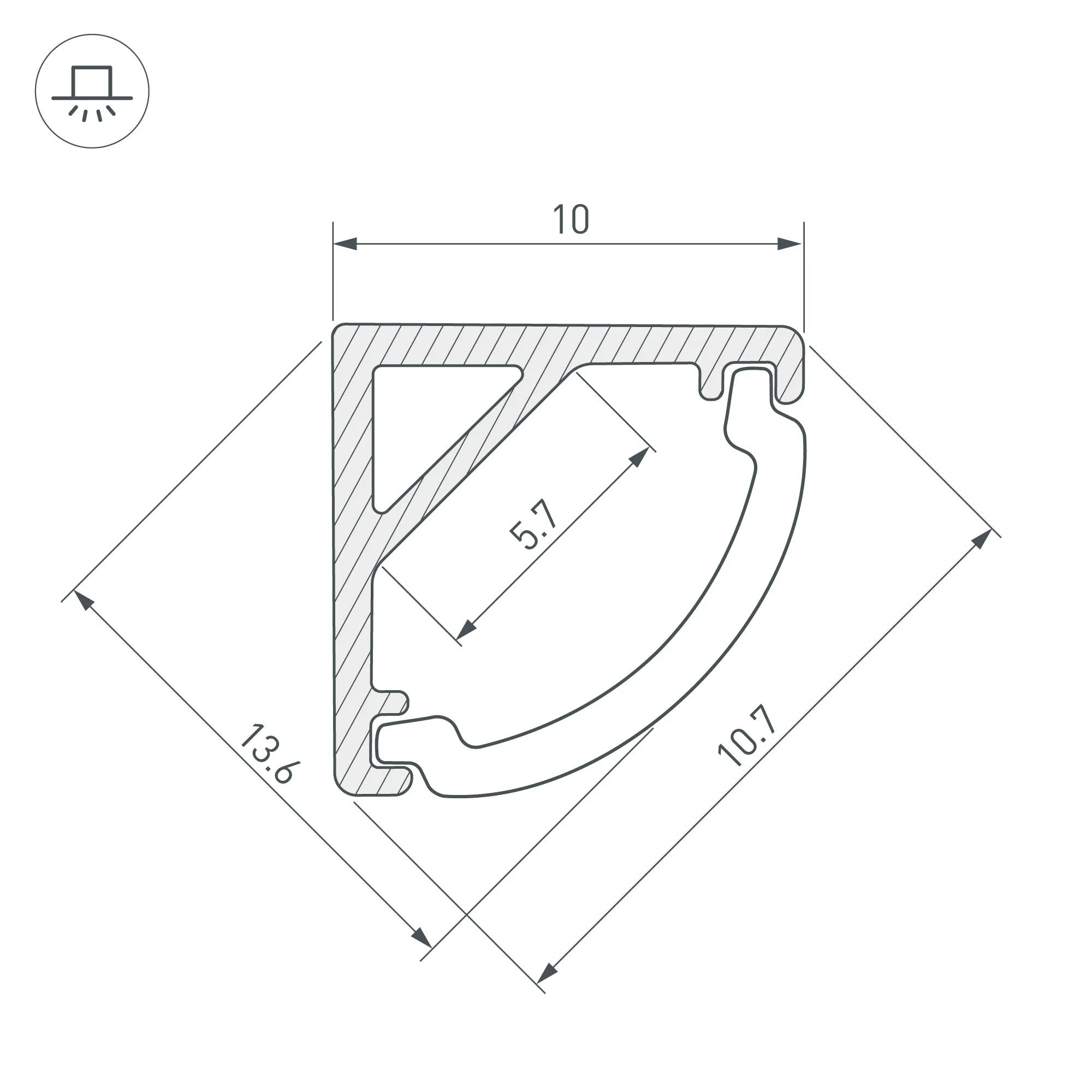 Угловой профиль из анодированного алюминия для подсветки мебели, ниш и других элементов интерьера. Габаритные размеры профиля составляют 2000 мм в длину, 10 мм в ширину и 10 мм в высоту. Площадка для установки светодиодных лент позволяет использовать ленту шириной до 5,7 мм и мощностью до 15 Вт/м. Это обеспечивает гибкость в выборе светодиодных лент и создает потрясающие световые решения.