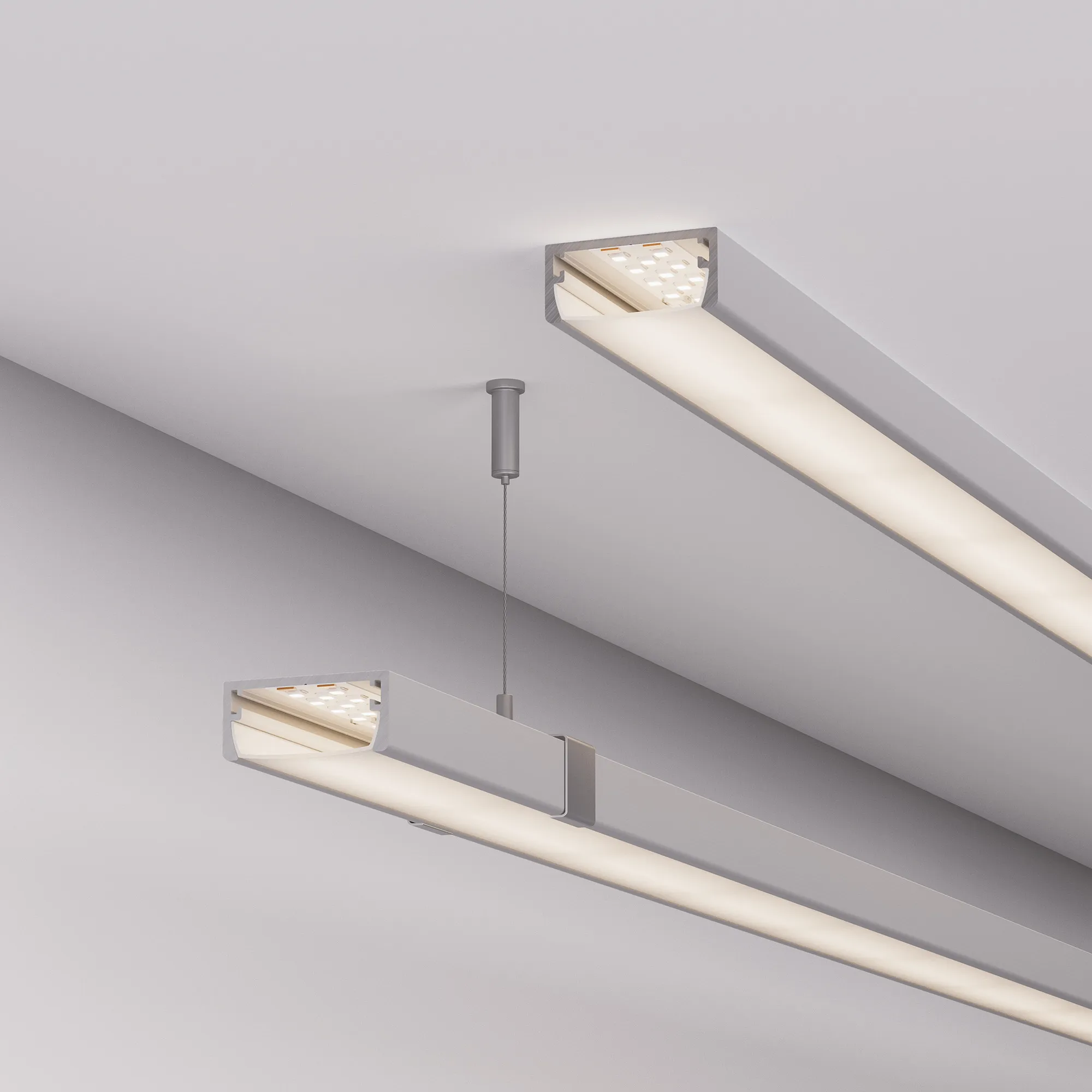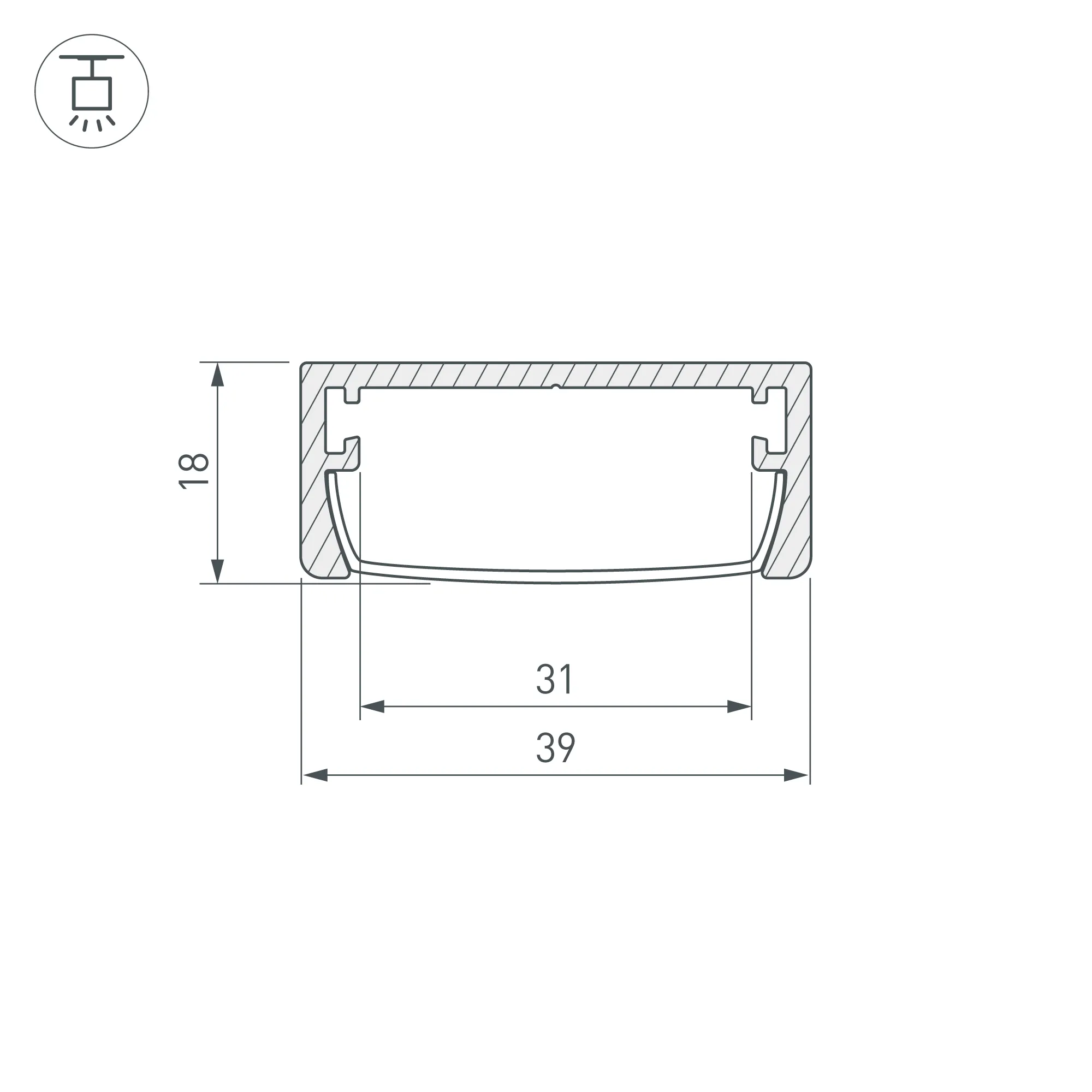 Накладной/подвесной профиль из анодированного алюминия для контурной подсветки элементов интерьера. Габаритные размеры профиля составляют 2000 мм в длину, 39 мм в ширину и 18 мм в высоту. Площадка для установки светодиодных лент позволяет использовать ленту шириной до 31 мм и мощностью до 28 Вт/м. Это обеспечивает гибкость в выборе светодиодных лент и создает потрясающие световые решения.
