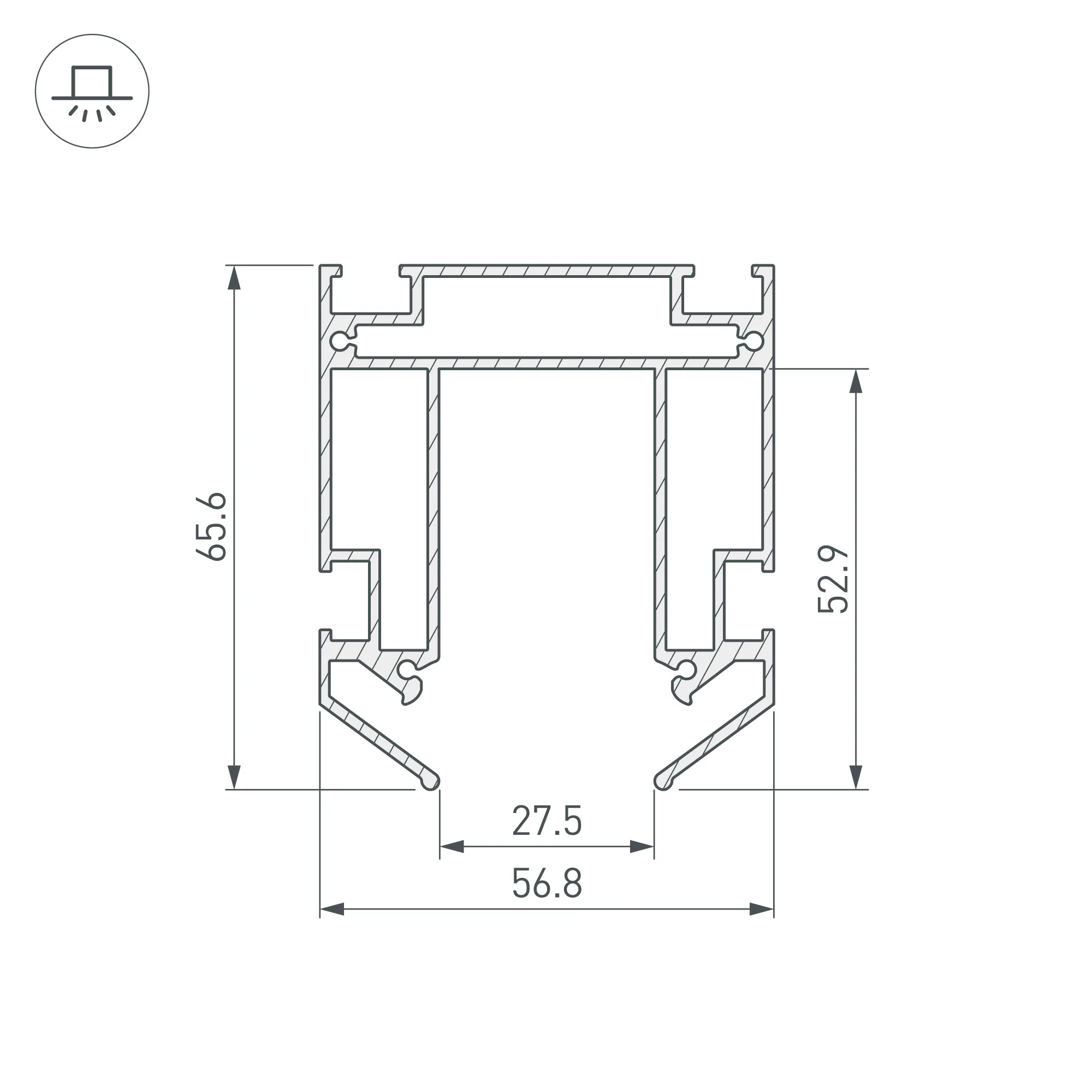 Алюминиевый профиль-держатель для установки в натяжной потолок магнитного трека MAG-ORIENT-TRACK. Габаритные размеры профиля составляют 2000 мм в длину, 57 мм в ширину и 66 мм в высоту. Заглушки и другие аксессуары приобретаются отдельно. Цена указана за 1 шт.