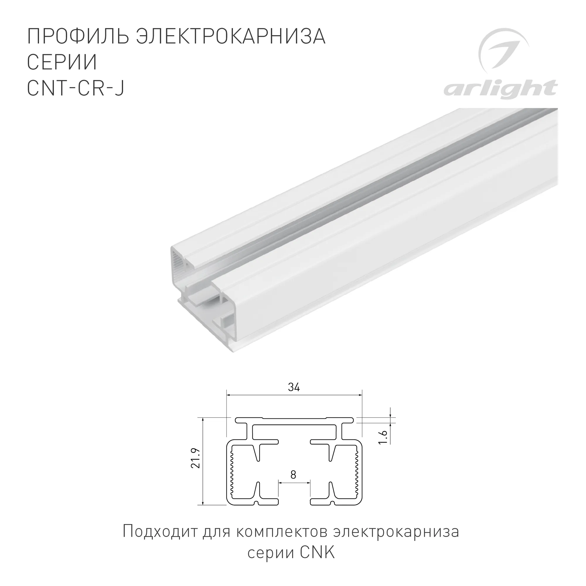 Алюминиейвый профиль для электрокарниза серии CNK, позволяет увеличить максимальную максимальную длину карниза.